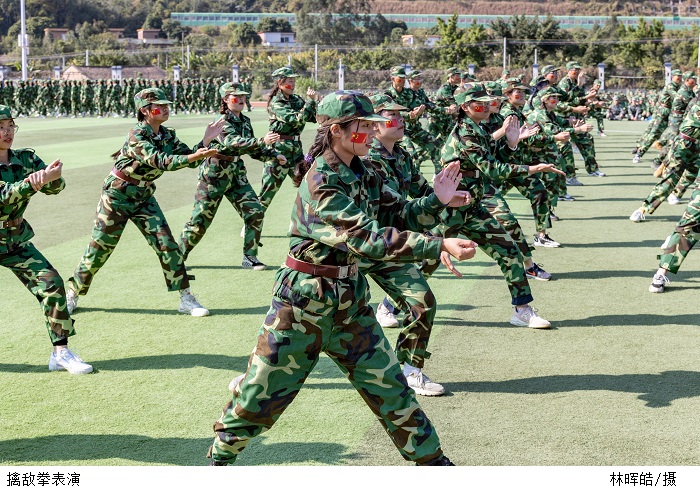 “学军人之风,塑健壮之体”。擒敌拳参演人员节奏分明、动作行云流水、一招一式力求克敌制胜;少年们手持“匕首”,动作整齐划一,大喝一声“杀”!将其飒爽英姿、正气凛然的战斗作风体现得淋漓尽致;汇操表演后,会计学院2020级新生带来感恩主题表演《感恩有你,因为有你》,感恩父母孕育之恩、感恩老师教书育人、感恩教官助其成长,感恩同学一路相伴,那些无以言表的感恩,都包含在歌声之中,铭记于心。