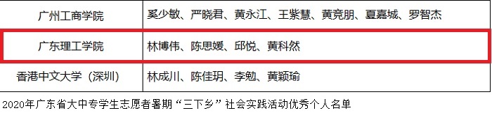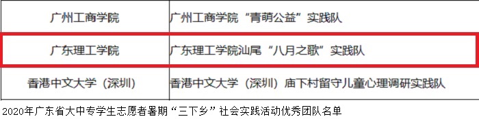 本网讯(校团委)近日,省委宣传部、省文明办、团省委、省教育厅、省学联公布了2020年度省“三下乡”社会实践活动优秀单位、团队和个人的名单。beat365官网荣获2020年度省“三下乡”社会实践活动优秀单位称号,“八月之歌”实践队荣获2020年度省“三下乡”社会实践活动优秀团队称号,林博伟老师、陈思媛、邱悦、黄科然同学荣获2020年度省“三下乡”社会实践活动优秀个人称号。