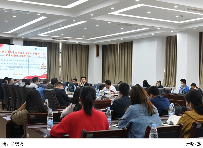 本网讯(宣传部 赵洁宜)12月10日下午,党委张东生书记在科技大楼12楼会议室召开党务干部培训会,增强党务干部的党性修养和自身素养,要求党务干部要做到信念坚、政治强、本领高、作风硬。党委张宗珊副书记、黎会友副书记、党委各部门正副负责人、各院系党总支正副书记、直属党支部书记、教工党支部书记、学生党支部书记参加培训。