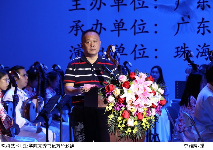 珠海艺术职业学院党委书记方华在致辞中强调高雅艺术进校园活动有助于大学生了解中华文化变迁、理清中华文化脉络、培养德智体美劳全面发展的社会主义建设者和接班人。