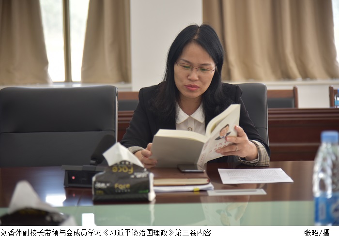 刘香萍副校长带领与会成员学习《习近平谈治国理政》第三卷的文章《改革越到深处越要担当作为》。