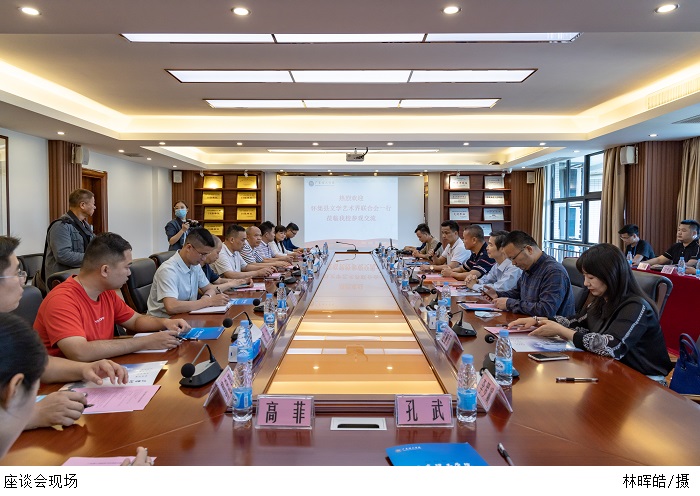 怀集县文联主席谭上洲对怀集县文联文艺工作进行了汇报,并对今后工作作出展望。广东省书法家协会会员孔祥林认为,文艺创作人员应注重“文”“德”“艺”三方面的融合。
