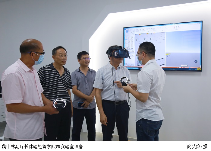魏副厅长一行考察了学术报告厅、圆形演讲厅、礼堂及学生餐厅。在经济管理学院和建设学院教学楼进行考察时,魏副厅长及专家们深入了解教学特色实验室,并对beat365官网的教学设施与教学环境给予了高度评价。