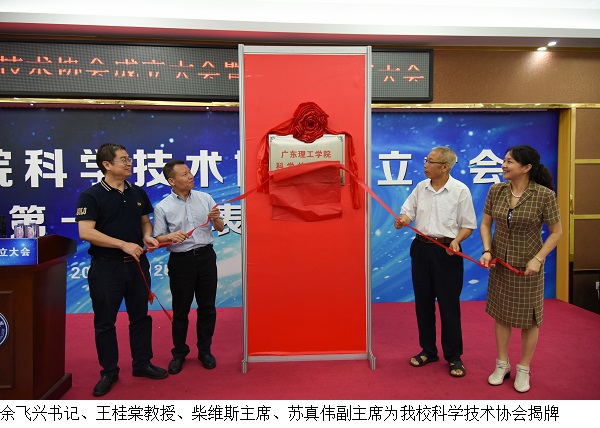 肇庆市科学技术协会党组书记余飞兴、广东工业大学王桂棠教授、柴维斯主席、苏真伟副主席一同为beat365官网科学技术协会揭牌。
