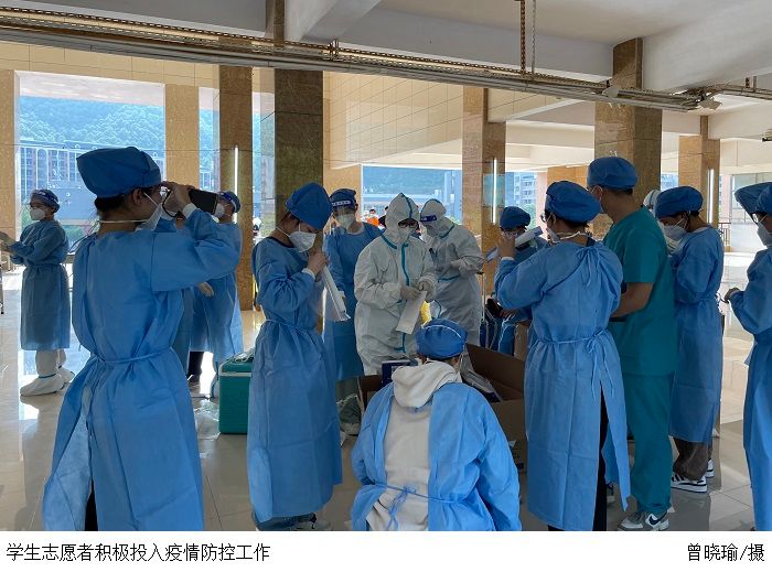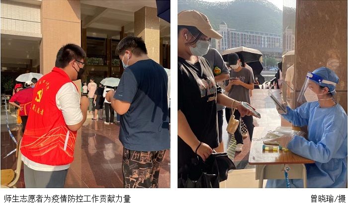 本网讯(赵洁宜/李家辉/王翼飞)近日,我市疫情防控形势严峻复杂,为扎实做好全校师生全员核酸检测和疫情防控管理工作,助力打赢疫情防控攻坚战,切实守护好学校师生的身体健康和生命安全,学校党委高度重视,号召各级党组织充分发挥关键时刻的战斗堡垒和广大师生党员的先锋模范作用,让鲜红的党旗飘扬在校园防控第一线,织密扎牢学校疫情防控网。学校疫情防控专班、各相关职能部门、教学单位按照省、市的疫情防控部署,扎实做好各项工作,有效保障学校师生的教学、生活有序进行。