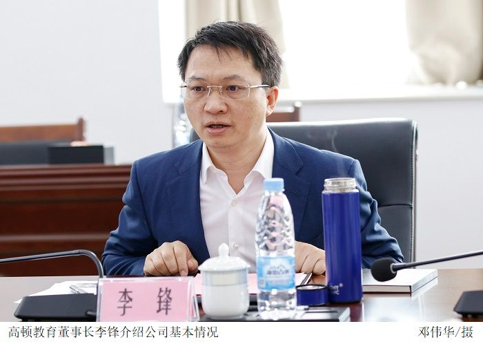 李锋介绍了上海高顿教育科技有限公司的发展历程、业务规模和未来发展方向等概况。他表示将调整公司未来发展战略,把产业学院建设作为公司发展的重点方向,通过数字经济产业学院的进一步建设,为高顿打造品牌的新项目,实现产教深度融合,把我们的学生培养得更加优秀,在未来有更好的发展。