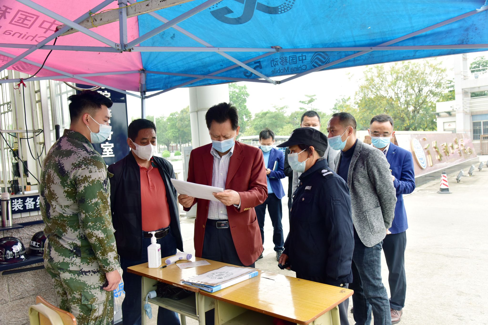 在学校校门,张东生一行实地查看管理情况,与值守人员现场交流,调研学校疫情防控各项措施的落实,并详细了解出入人员检测和信息登记等情况,要求值守人员切实做好出入人员和来往车辆管控,严守校园疫情防控第一道安全防线。