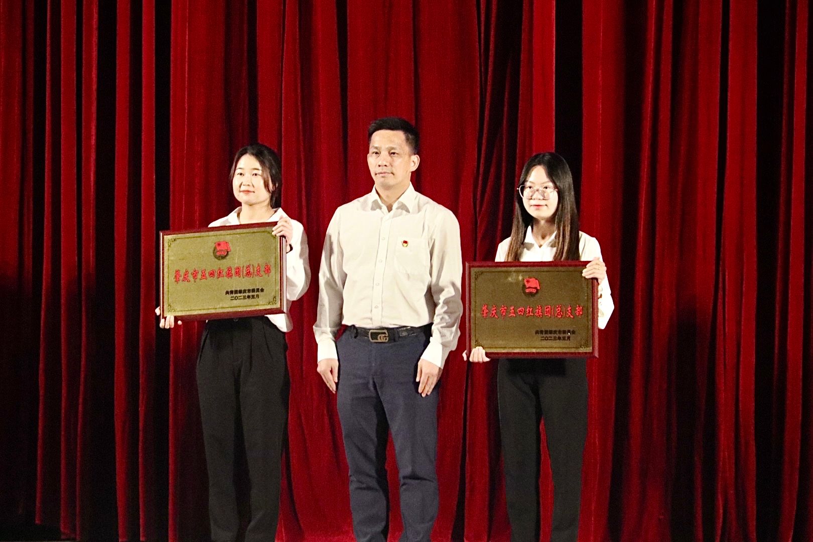 学校党委副书记黎会友为“肇庆市五四红旗团(总)支部”为获奖集体颁奖