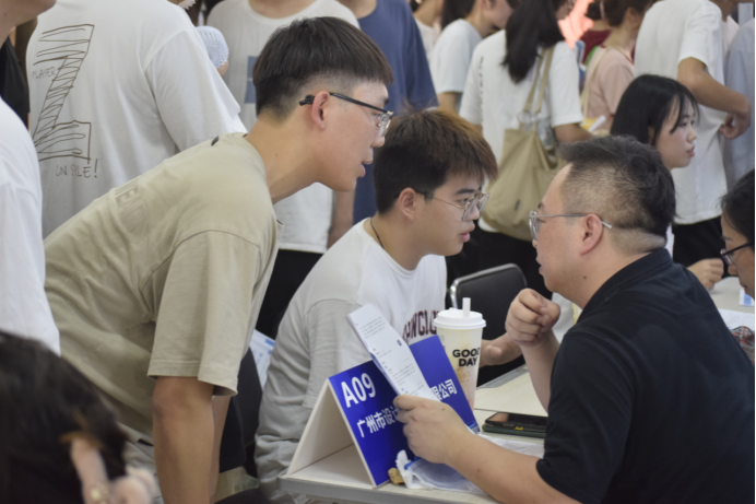 此次双选会现场氛围活跃。同学们手持简历,了解用人单位的信息和需求,积极与企业深入交谈。到场的学生大多对此次双选会抱有高期待的态度,表示希望能在其中找到合适的实习岗位。