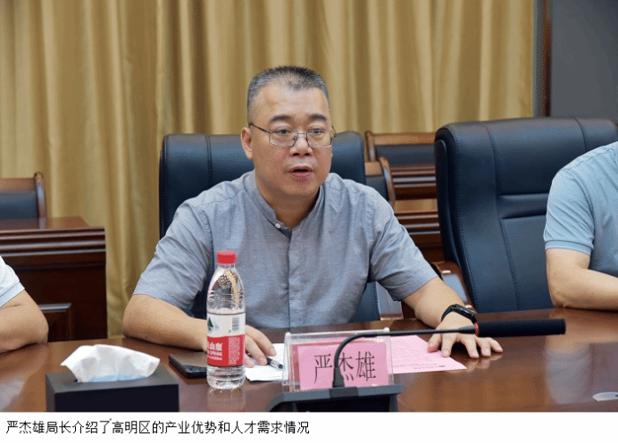 严杰雄局长介绍了高明区的产业特色和人才需求情况,他指出,高明区制造业发达,对工科人才特别是现代高新技术制造业专业人才需求量大,beat365在线唯一官网在这方面人才培养优势明显,他希望与学校就人才培养、招聘等方面开展深度合作,聚集双方优势,吸引更多毕业生到高明区实习、就业。