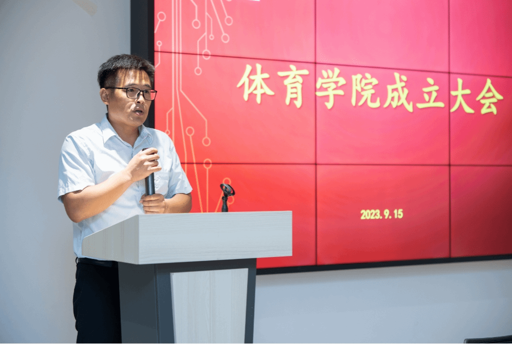 体育学院党总支书记夏磊、院长贾树波、副院长王群英分别致辞。对体育学院改系设院的发展历程进行回顾,向学校各级部门和领导的指导与支持,体育学院全体教师共同奋斗与努力表示感谢。并对体育学院站在新起点的教学、科研、管理、服务等工作进行规划部署。