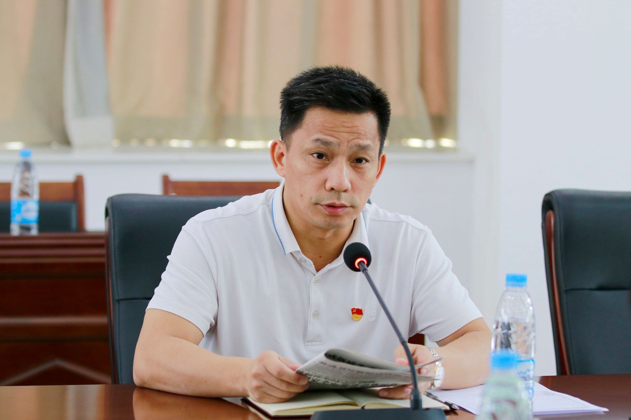 本网讯(宣传部)2023年10月17日,beat365官网党委在综合楼12楼会议室召开党委理论学习中心组学习会议,认真学习习近平文化思想、习近平总书记重要指示和全国宣传思想文化工作会议精神。全体校领导、校长助理,党委部门正职负责人、行政部门党员正职负责人,各党总支书记、直属党支部书记、马克思主义学院院长参加会议。学校党委书记张东生主持会议。
