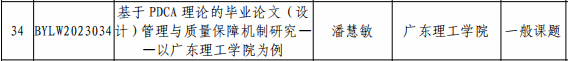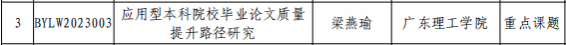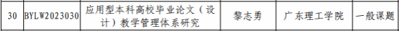 毕业论文(设计)管理研究课题是广东省高等学校教学管理学会为落实全国教育工作会议、全国教育大会精神,贯彻《本科毕业论文(设计)抽检办法(试行)》要求开展的项目,旨加强本科毕业论文管理,提高我省本科毕业论文质量。