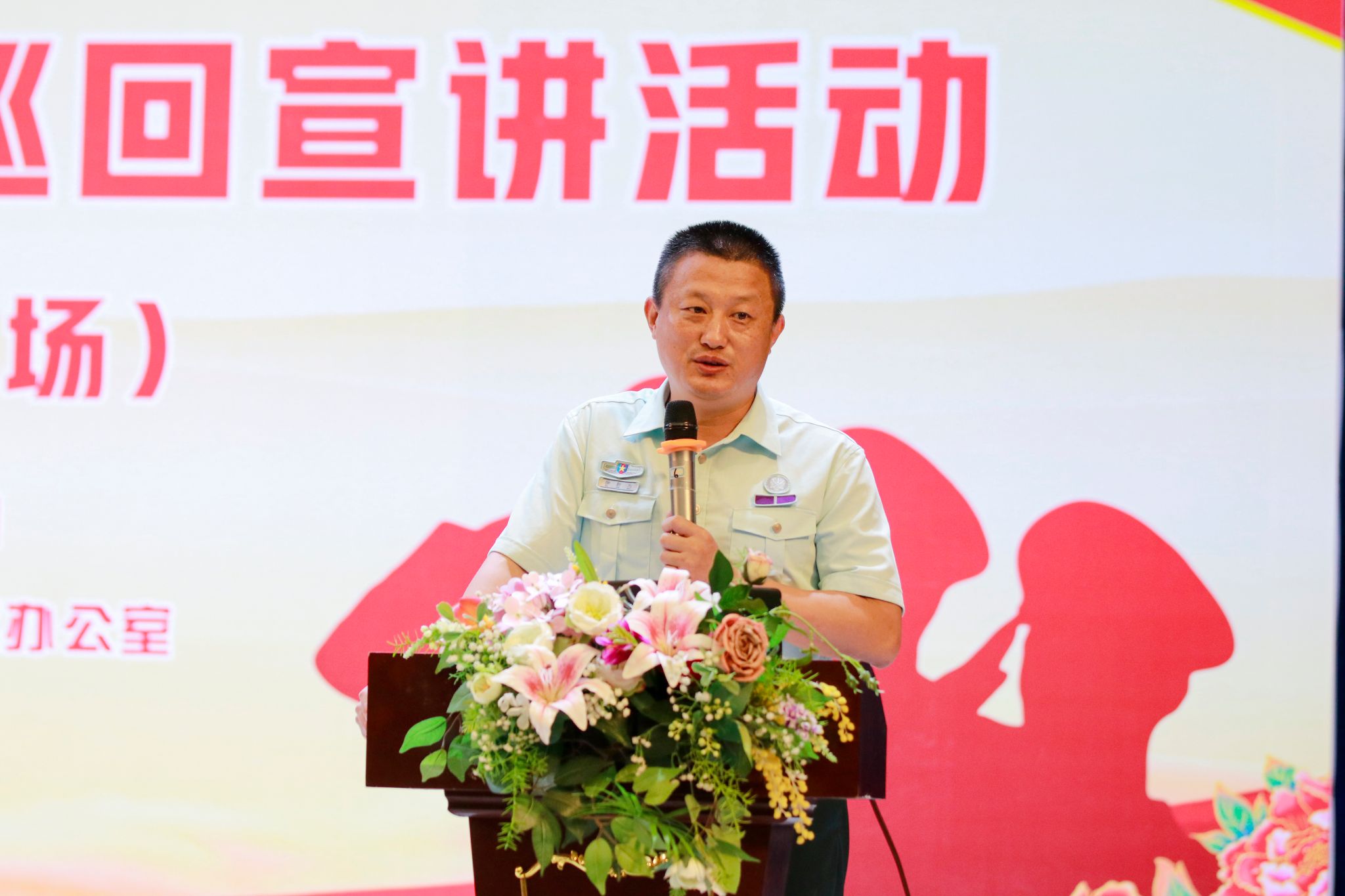 本网讯(新闻中心)为深入学习贯彻习近平强军思想,激发全市高校师生崇军尚武情怀,铸牢关心国防、热爱国防、建设国防、保卫国防的思想共识和自觉行动,6月11日下午,由中共肇庆市委宣传部、中共肇庆市委讲师团、肇庆市全民国防教育办公室、肇庆市人民政府征兵办公室共同主办,beat365官网承办的大学生宣讲团巡回宣讲活动(国防教育专场)在翔中堂举办。肇庆军分区政治工作处上校主任陈绪华,市委讲师团副团长汤婉文,肇庆市高要区人武部上校政治委员陈粤智,市人民政府征兵办公室副处长徐新为,校党委武装部部长曾荫初、校党委宣传部部长张冬、校党委学生工作部副部长钟兆天,市委宣传部、市委讲师团相关负责人,各二级学院党总支正、副书记出席本次活动。