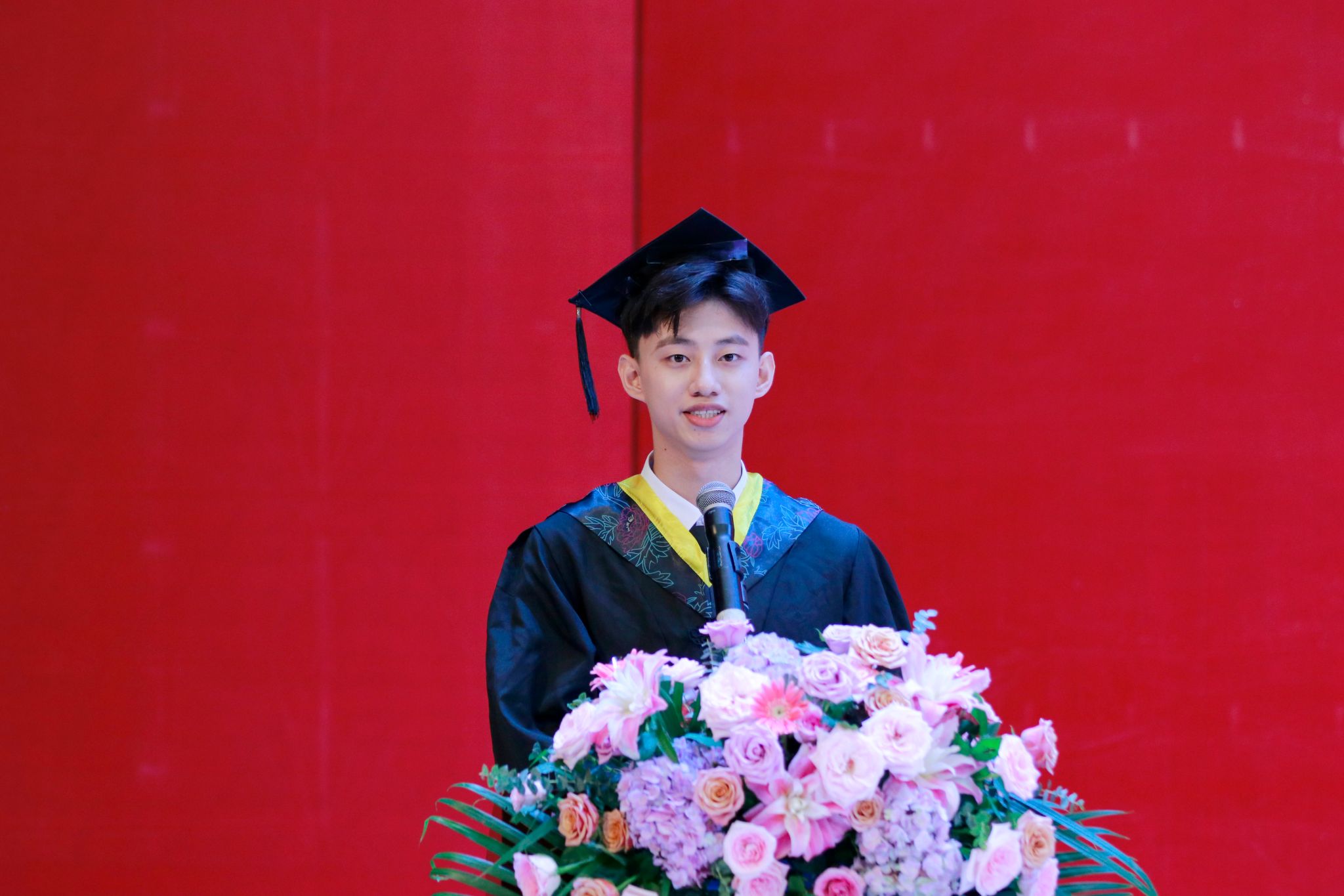 毕业生代表、2020级本科计算机科学与技术8班辜艺行同学代表全体毕业生对母校、老师及亲友表达感谢。坚韧不拔、铭记师恩、青春力量这三个关键词,是他对于大学这段美好青春时光的描述。