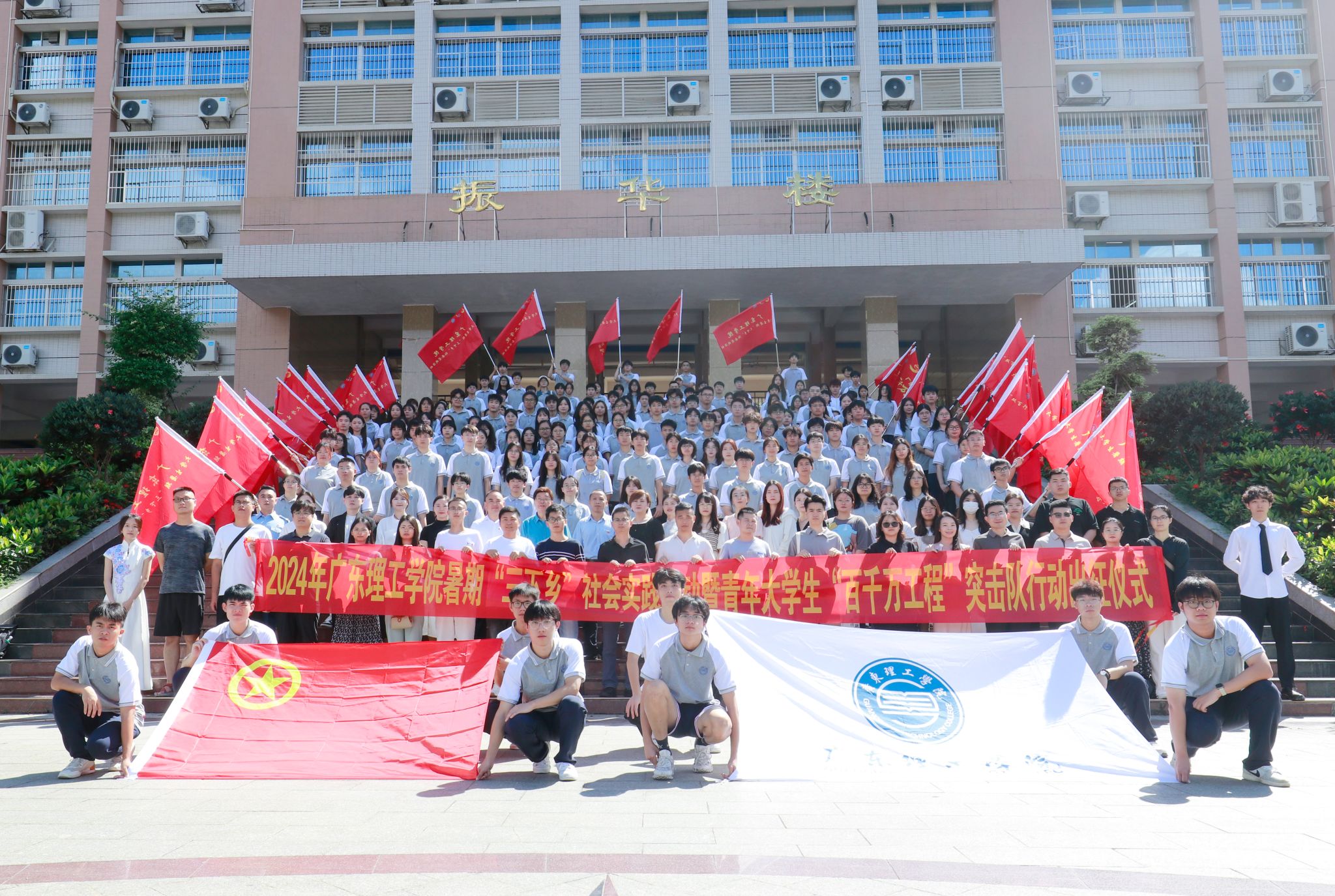 自2024年暑期“三下乡”社会实践活动暨“百千万工程”突击队行动启动,各二级学院、各组织成功结对突击队共计42支,校级成功立项24支。接下来,学校将持续深化社会实践育人成效,引导和帮助广大青年学生在社会课堂中“受教育、长才干、作贡献”,积极融入学校思政课一体化建设,动员广大师生在推进学校高质量发展、“绿美广东”生态建设、“百县千镇万村高质量发展工程”战略实施等方面贡献青春力量!