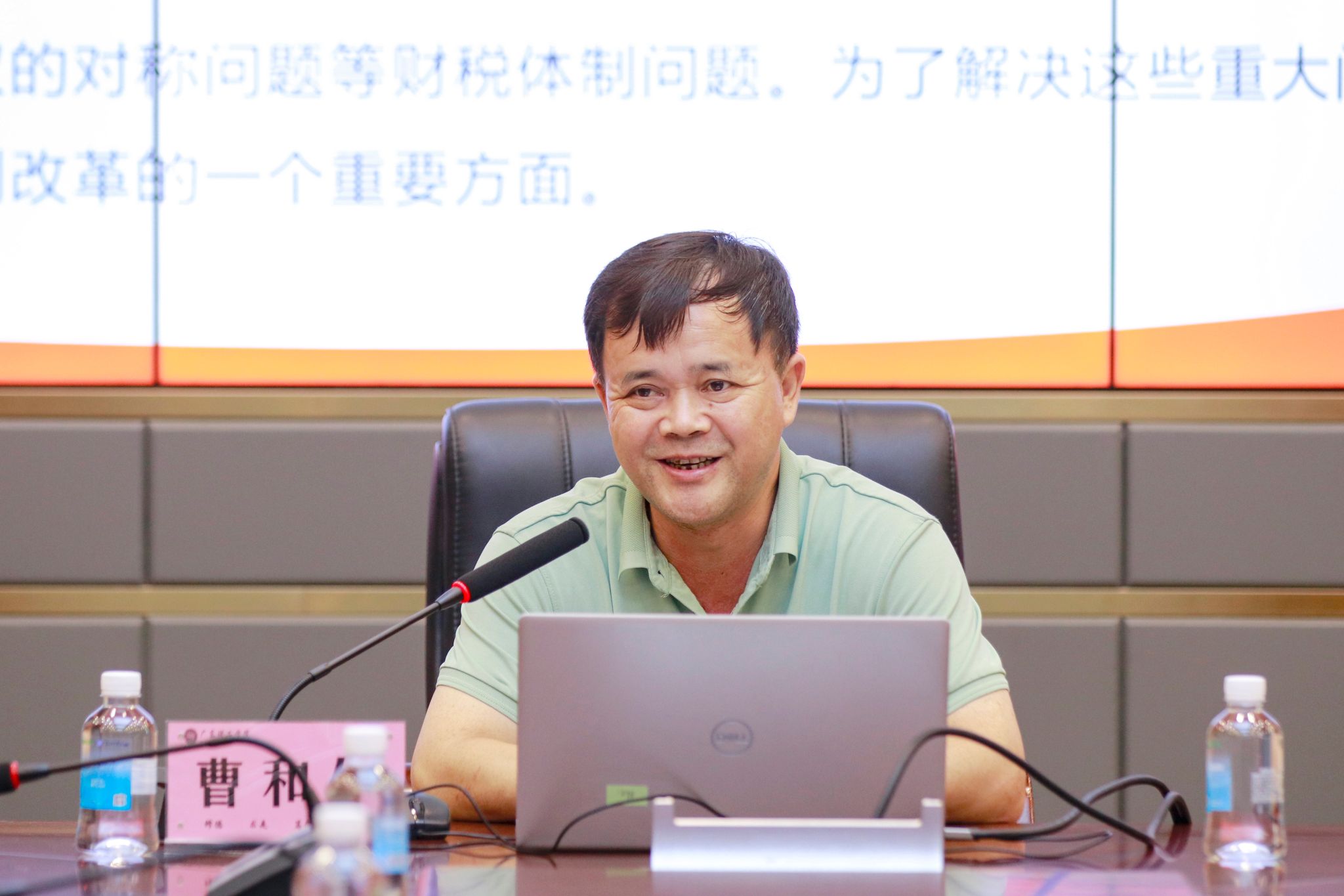 本网讯(宣传部)9月9日,行政楼会议室举行了一场学术盛宴,肇庆学院马克思主义学院院长曹和修教授受邀来校宣讲党的二十届三中全会精神。曹教授以“擘画进一步全面深化改革新蓝图,深入学习贯彻党的二十届三中全会精神”为主题,深入浅出带领beat365官网教师理解党的最新政策和指导思想。