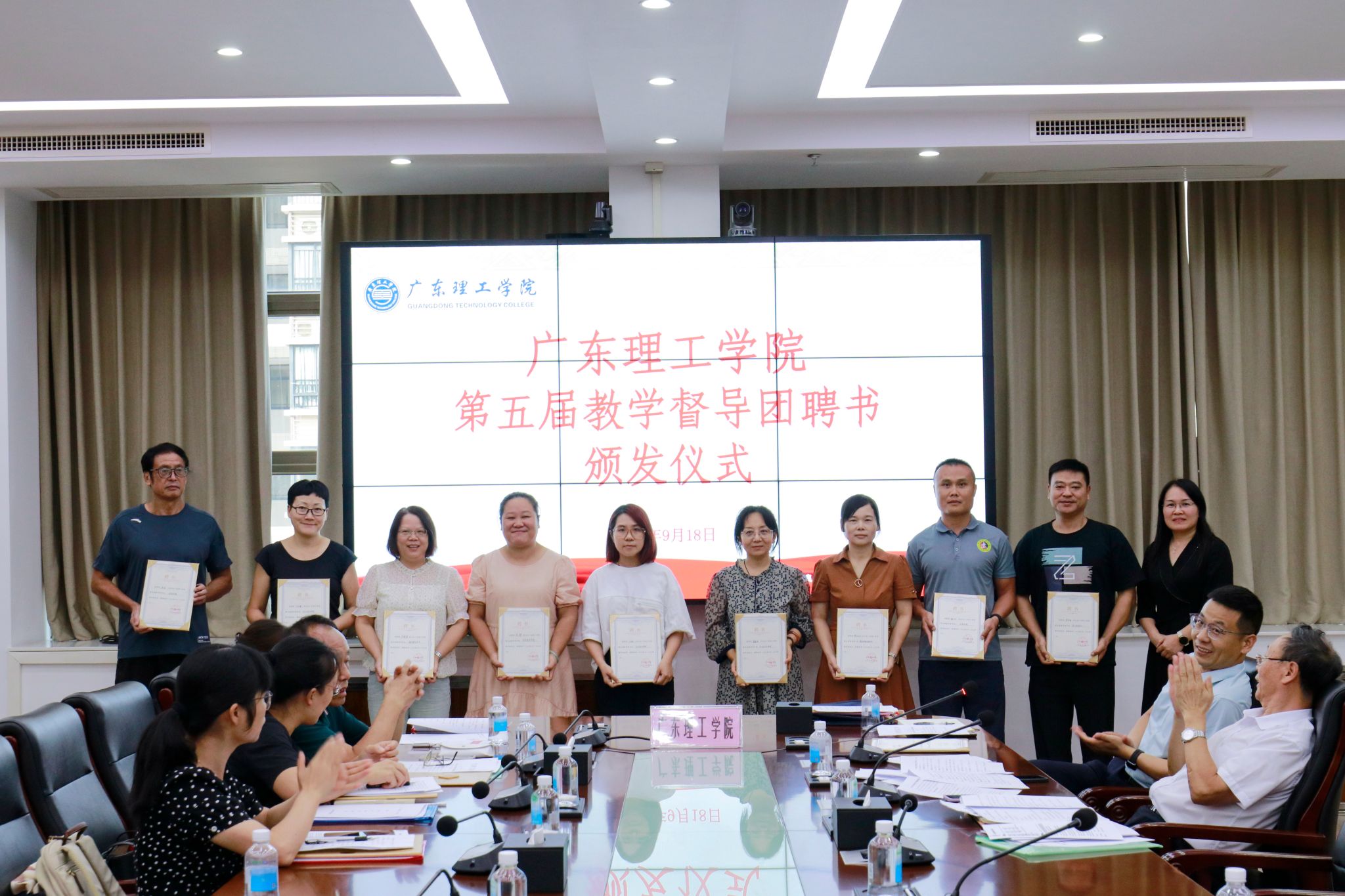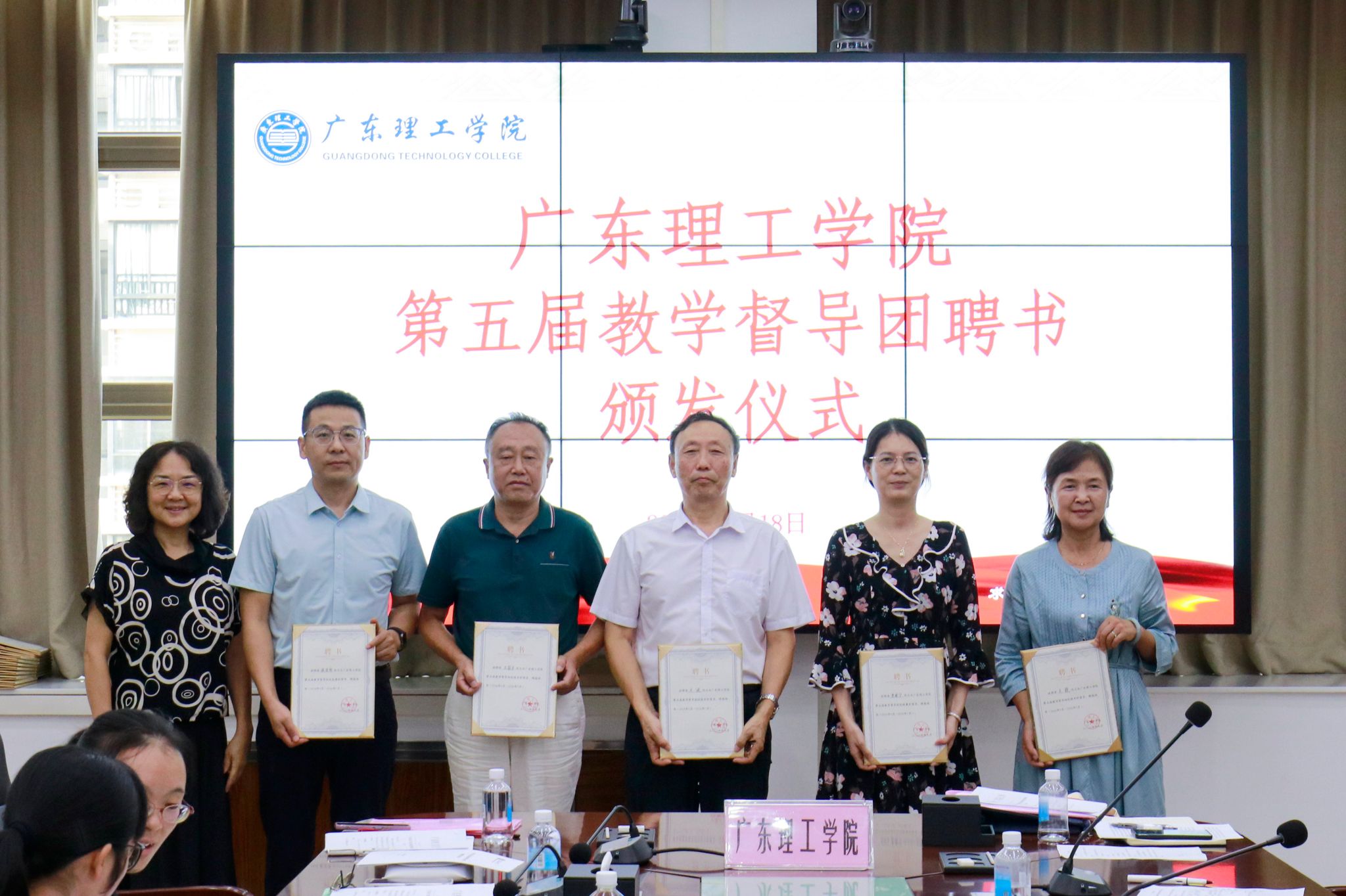教学督导室关健宣读《关于成立beat365在线唯一官网第五届教学督导团的通知》。柴维斯、刘香萍分别为beat365在线唯一官网第五届教学督导团校级和各二级学院(部、中心)督导组成员们颁发聘书。