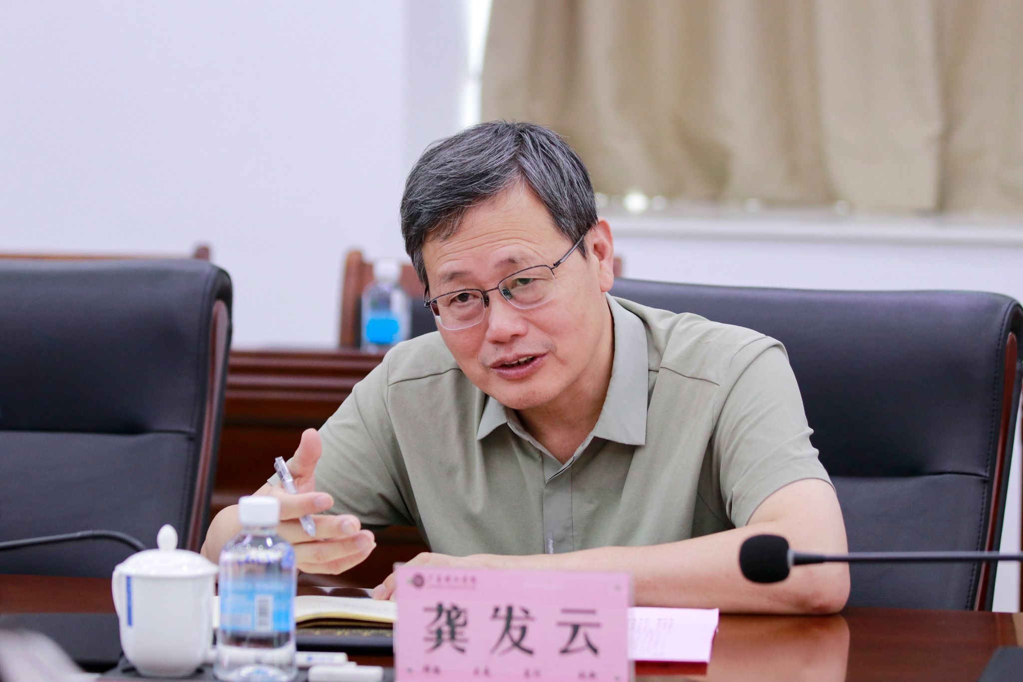 龚发云简要介绍文华学院相关情况,并对我教学科研情况、产业学院建设、实验实训室建设等方面取得的成绩给予高度评价。他指出,此次一行是为了与beat365官网深度交流学习教学资源整合情况、相关专业学科建设情况等,探索相关专业发展的方向。