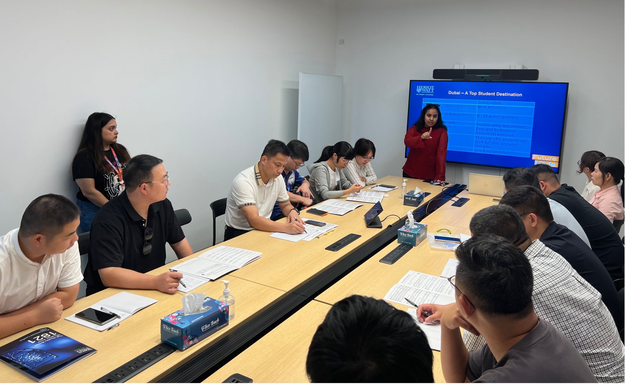 赫瑞瓦特大学(HWU)作为迪拜规模最大的国际性大学,教学质量与英国本部校区采用一致的标准,根据阿联酋人才市场需求在管理、工程、建筑、石油、能源、设施管理、信息科技等领域设立了近50个本科和研究生学位课程。HWU的教授分享了在商业教育改革、国际化管理及科技教育等方面的宝贵经验,为学校的未来发展提供了重要参考。团队参观了HWU的实验室及特色学院,近距离感受了这所百年学府的深厚底蕴和学术氛围,引发了团队成员对科技教育方向的思考。