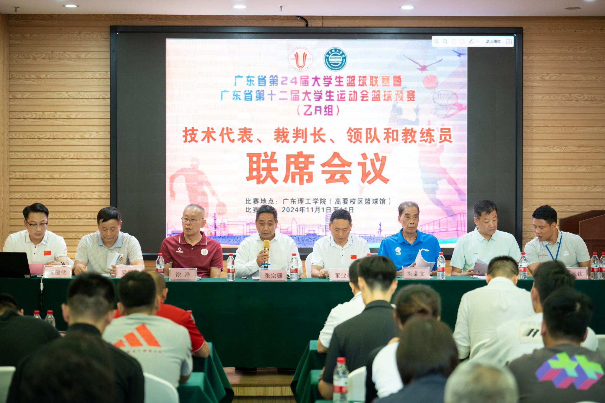 本网讯(体育学院新闻中心)2024年广东省第24届大学生篮球联赛暨广东省第十二届大学生运动篮球预赛(乙A组)将于2024年11月1日至11月11日在beat365官网高要校区篮球馆举行。根据竞赛规程要求,11月1日下午在肇庆市山水时尚酒店7楼会议室召开赛前领队教练员联席会议。