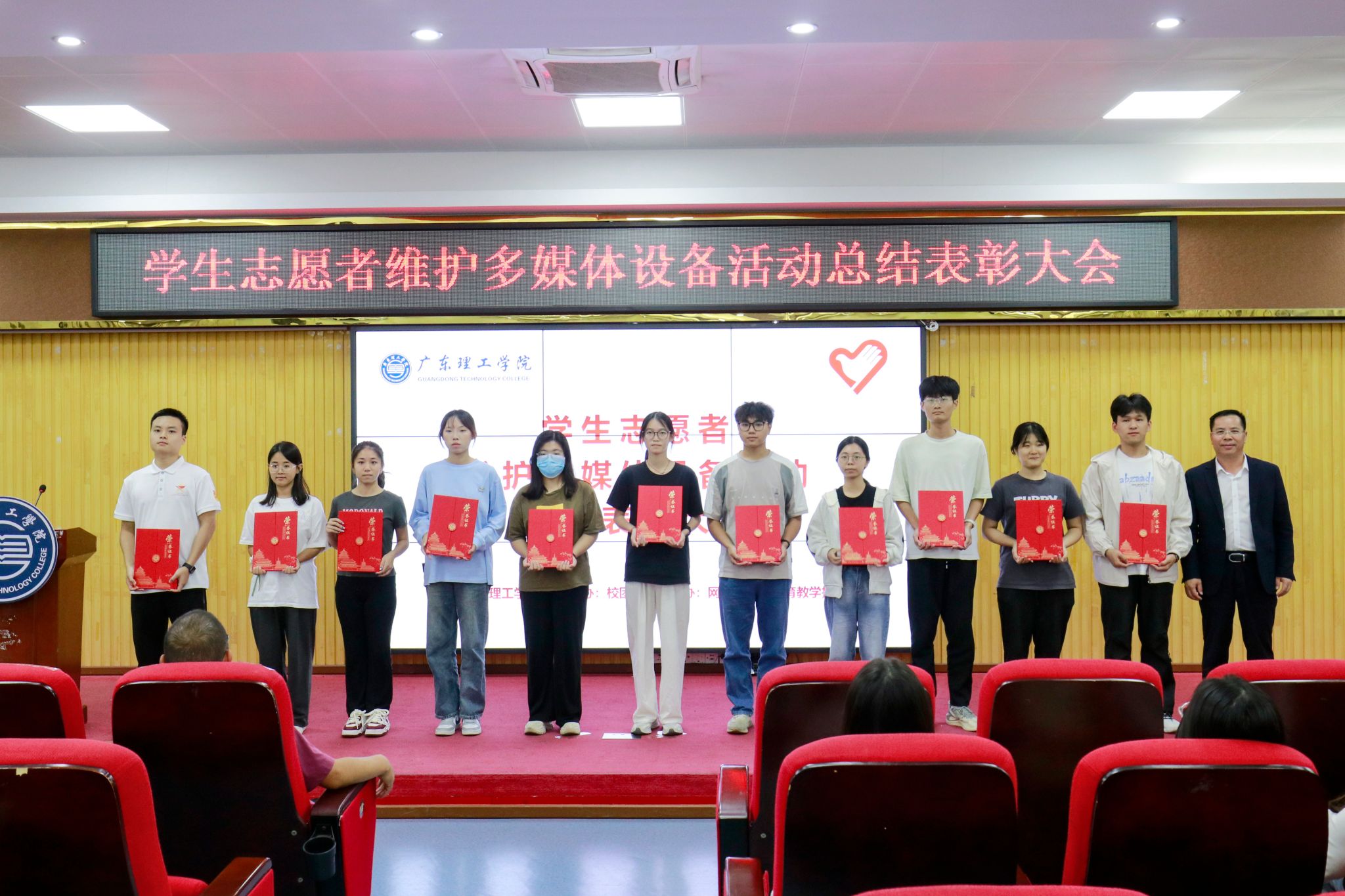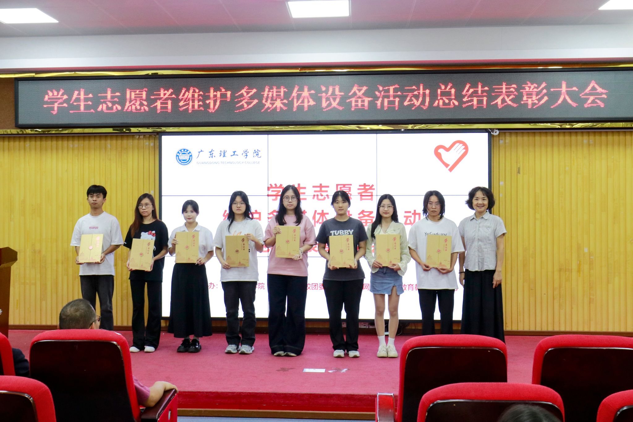 赖汶熙作为优秀志愿者代表上台发言,她表示从中意识到多媒体设备维护和管理的重要性,未来也将继续发扬志愿者精神,为维护学校的多媒体设备贡献自己的力量。