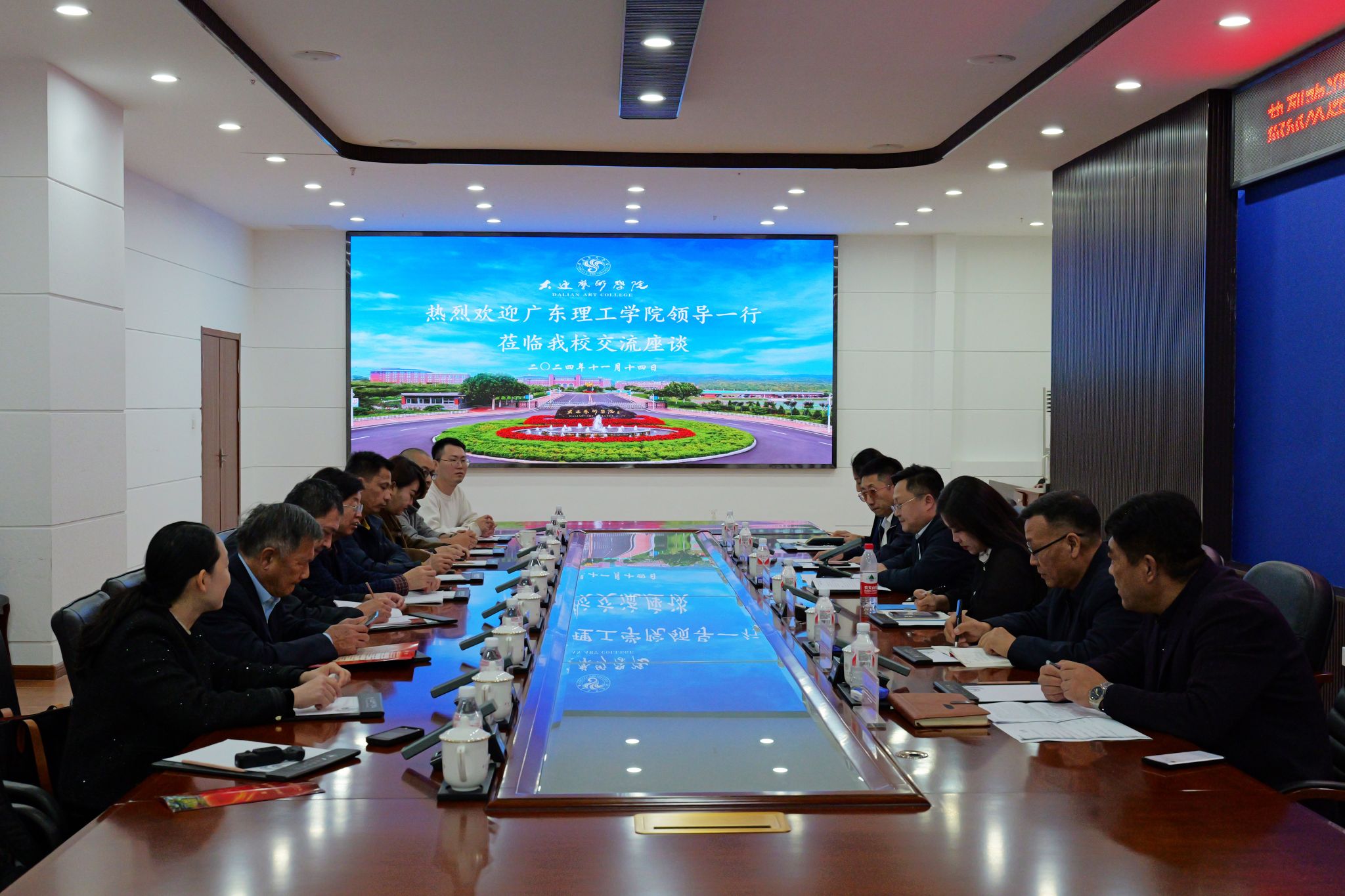 大连艺术学院党委副书记任思斌、纪委书记田苗苗及党委宣传部网络中心、党校办公室、党政办公室、学生处等有关部门负责人热情接待并与beat365官网调研组一行进行了深入座谈。
