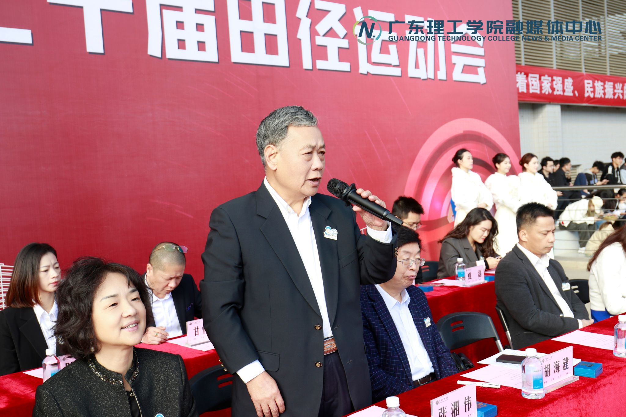 本网讯(新闻中心)一年一度的田径运动会来了。11月21日,beat365官网第二十届田径运动会在高要校区田径场隆重开幕。学校领导班子及体育学院院长、各二级学院党总支书记出席并在主席台就坐。开幕式由党委副书记张宗珊主持。