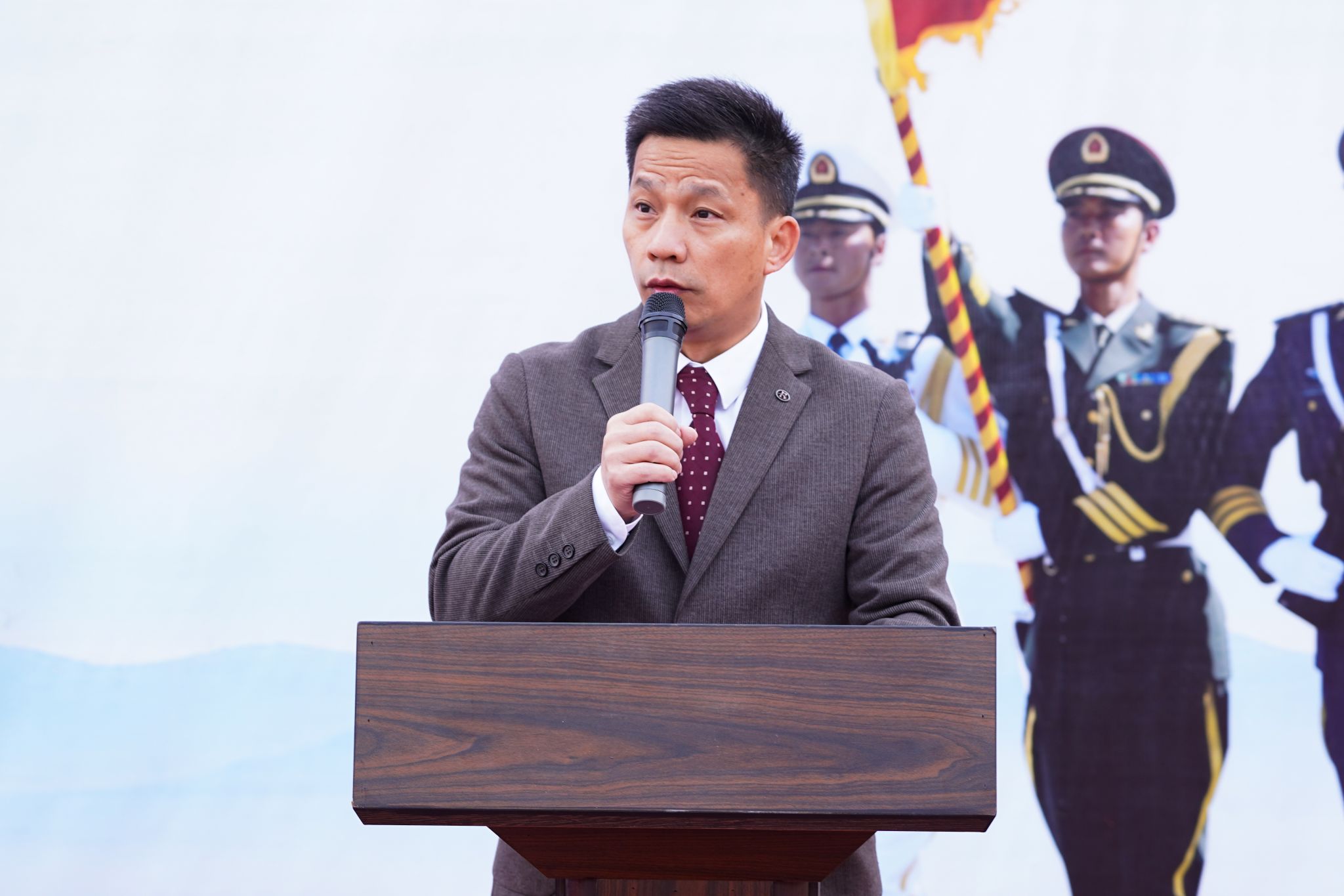 新生军训教官代表杨嘉爵、魏文峰同志发言。他们谈到军训是每一位青年学子成长道路上不可或缺的一步。它不仅能够增强学生的体质,磨学生的意志,更能培养团队精神和爱国精神。他们将通过科学的训练计划和工作过程中训练内容,帮助同学们掌握基本的军事技能,培养自律意识和坚韧毅力,也希望同学们能够认真刻苦训练。训练中的每一次坚持和努力,都将化作成长道路上的宝贵财富。
