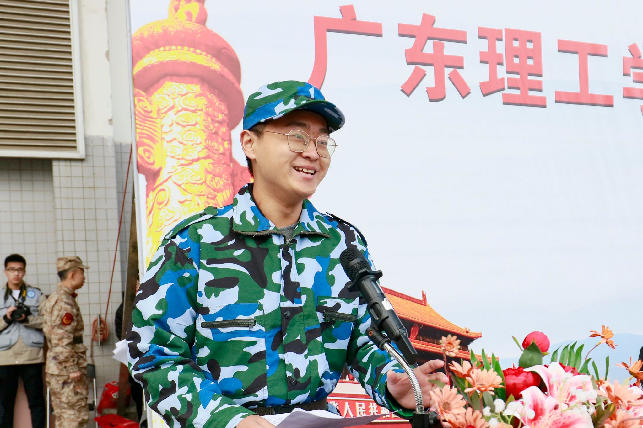 2024级本科商务英语3班崔艺川、经济管理学院跨境电子商务3班林佩君代表全体参训同学庄严承诺。尊重教官,尊重师长,服从命令,听从指挥……吃苦耐劳、拼搏向上,磨炼坚强意志,锻炼过硬体质。