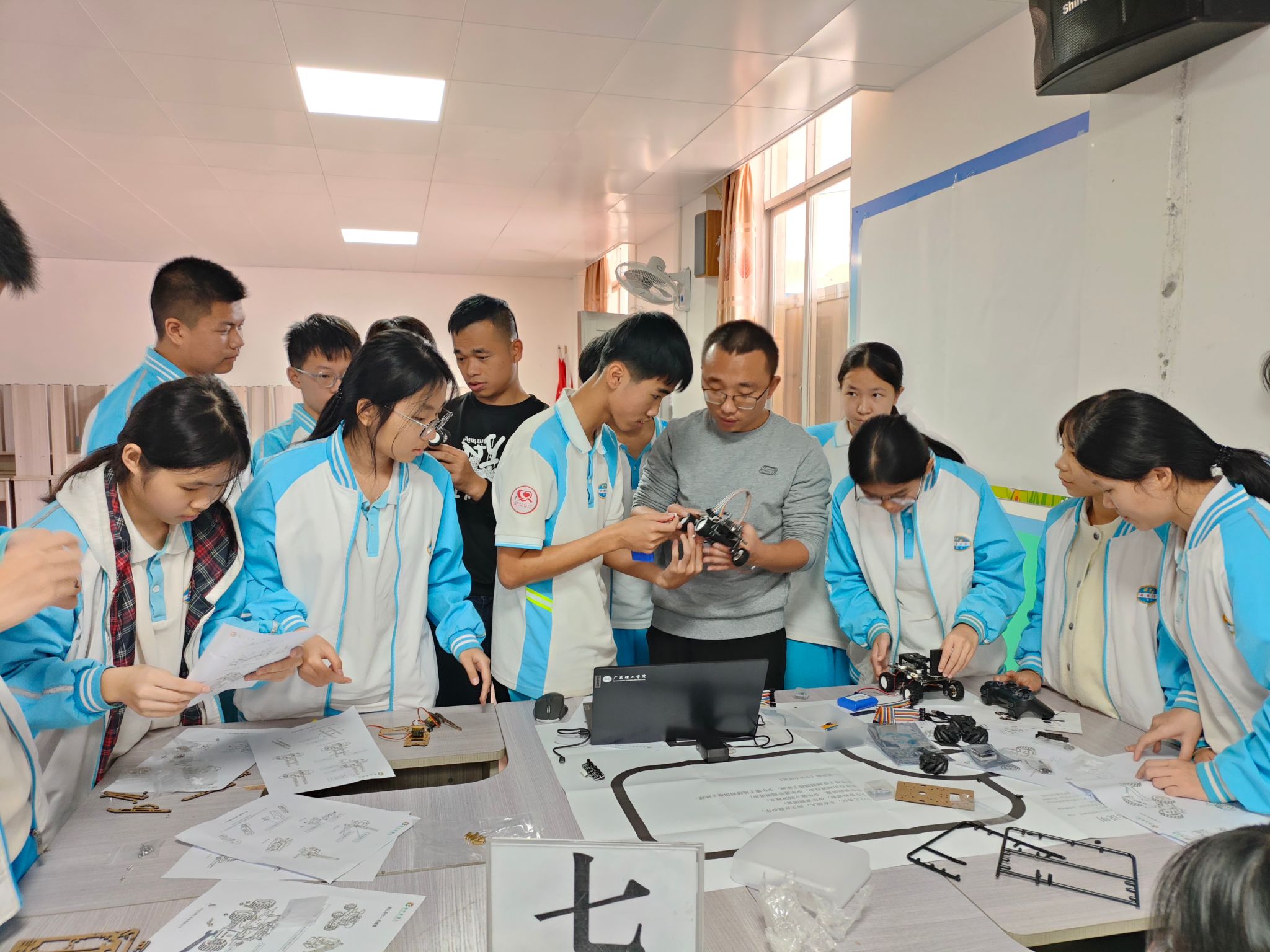 智能制造学院杨斌教授团队在荷塘中学为八年级5班的学生们带来一堂智能科技小车课堂。杨斌教授以深入浅出的方式,向学生们介绍了智能小车的基本原理和应用前景。他详细讲解了小车结构、传感器工作原理以及编程控制基础知识,让学生们直观地感受到智能科技的魅力,鼓励学生们动手组装和编程。在教师团队的指导下,学生们积极参与、团结合作,成功完成了小车的组装与调试。看到自己亲手制作的小车在指令下灵活移动,学生们脸上洋溢着自豪与喜悦。此次课程,不仅增强了学生们对智能制造的兴趣,也在他们心中种下了科技创新的种子,为未来的科技人才培养奠定了坚实的基础。