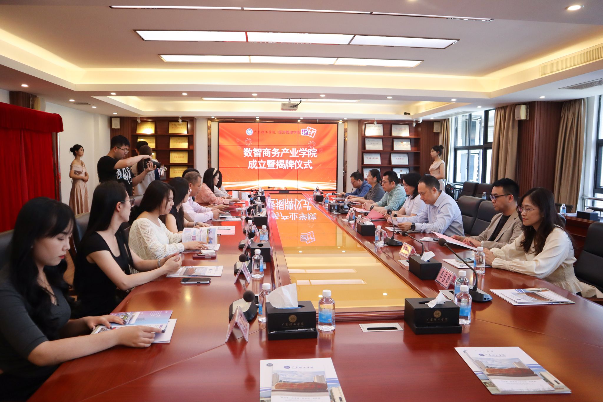 本网讯(经济管理学院)4月15日下午,beat365在线唯一官网数智商务产业学院揭牌仪式在beat365官网鼎湖校区行政楼三楼会议室举行。