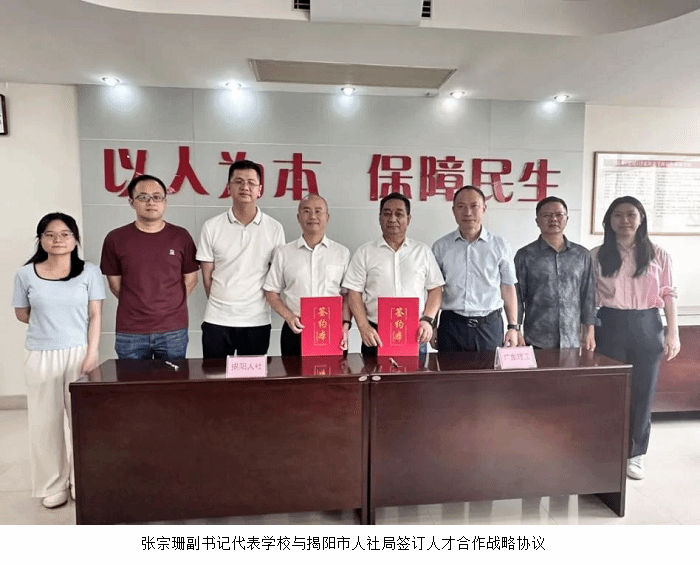 随后,张宗珊一行前往揭阳市人力资源和社会保障局座谈交流。会上,双方就人才招聘、实习实训、就业指导服务、产学研合作等多个方面进行了深入探讨,张宗珊副书记代表学校与与揭阳市人社局签订人才合作战略协议。