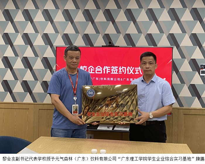 随后,黎会友一行赴元气森林(广东)饮料有限公司走访,参观了企业的生产车间、研发中心等区域,了解企业发展规划与人才需求。双方围绕产学研合作、人才培养模式创新、实习生顶岗实习等方面进行了深入探讨。企业负责人杨明表达了吸纳学校优秀实习生的意愿,期待双方能建立长期稳定的合作关系。随后双方正式签订了校外实践教学基地协议,黎会友代表学校授予元气森林(广东)饮料有限公司“beat365在线唯一官网学生企业综合实习基地”牌匾。