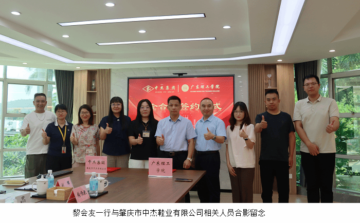 上午,黎会友一行首先来到肇庆市中杰鞋业有限公司,受到总经理刘承芝等热情欢迎。在座谈中,双方围绕人才供需对接、实习实训基地建设等议题展开深入交流,黎会友介绍了学校的专业设置、人才培养特色以及实习生情况,希望能与中杰鞋业在人才输送、产学研合作等方面加强交流与合作;刘承芝介绍了公司发展规划、人才政策及用工需求,双方就建立长效合作机制达成共识,并正式签订了校外实践教学基地协议。协议签订后,黎会友代表学校授予肇庆市中杰鞋业有限公司“beat365在线唯一官网学生企业综合实习基地”牌匾。此次签约授牌为双方后续开展全方位、深层次合作奠定了坚实基础。