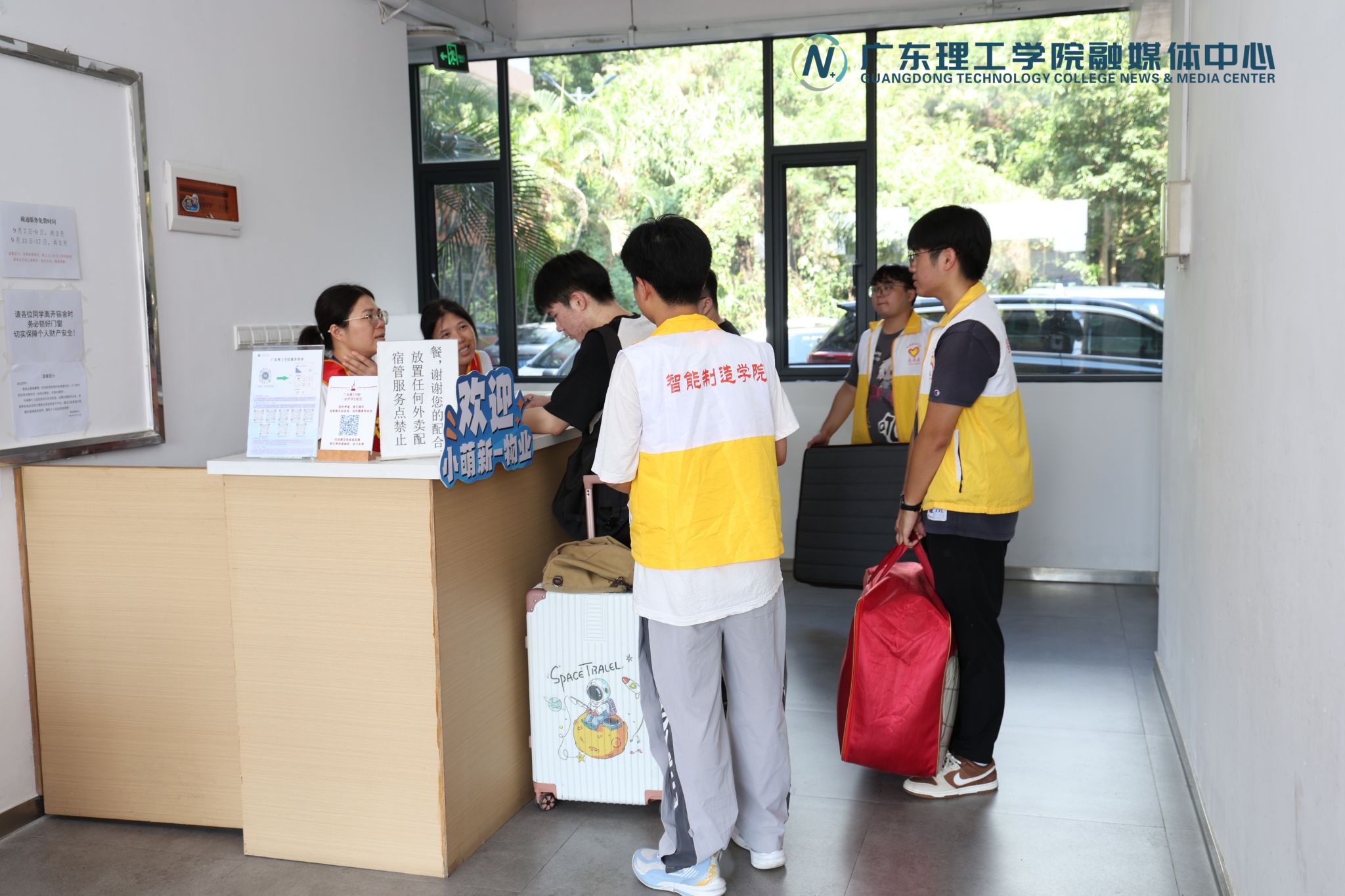 为保障迎新流程高效顺畅、服务温暖周到,学校提前精心布置了各迎新场所,设置清晰的入学流程指示、校园地图、指引标识和打卡点,全力确保新生顺利报到。入学前,各二级学院与辅导员走进新生宿舍,全面检查生活设施和环境卫生,提前做好新生入住保障。