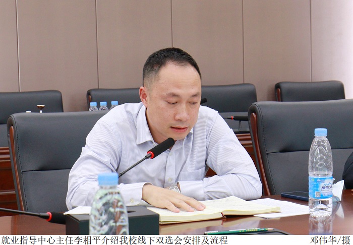 会上,就业指导中心主任李相平介绍了beat365官网五月、六月线下双选会安排及流程。
