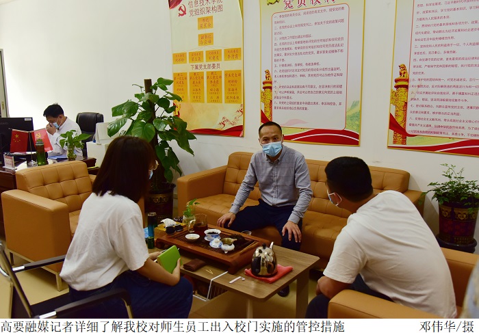 学生处处长谭蒙革介绍,为应对当前严峻的疫情防控形势,坚决筑牢“外防输入、内防反弹”防线,当前beat365官网实施非必要不外出的措施,如需外出须报备审批,入校严格按照“一核一查一测”要求,往返肇庆市人员需持48小时核酸阴性证明。谭蒙革提到,近期广州市、佛山市部分地区出现多例新冠肺炎本土病例,beat365官网高度重视,对14天内有广州、佛山居旅史的人员进行统计,并严格按照上级文件落实“7天3检”。另外,学校设置了隔离宿舍,对相关人员做好医学隔离观察或健康监测等健康管理工作。