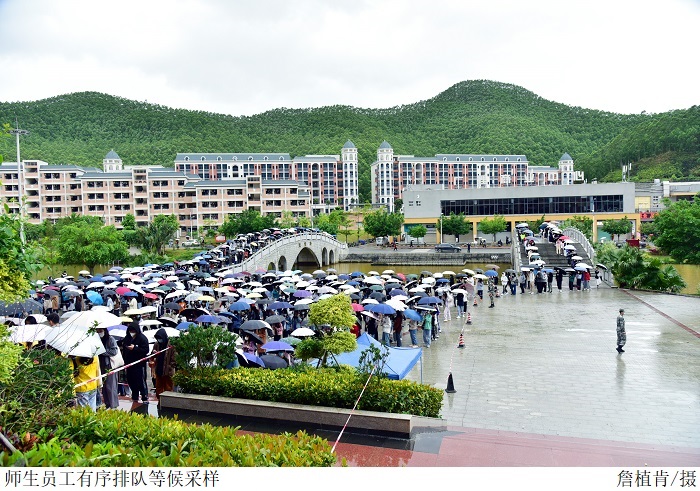 学校高度重视此次全员核酸检测工作,校党委、疫情防控专班周密计划、详细部署,与辖区检测医院对接;党政领导班子冲锋在前,下沉检测点靠前指挥,让党旗高高飘扬在疫情防控和服务保障一线;相关部门及院系闻令而动,迅速响应,积极投入到核酸检测采样工作当中。