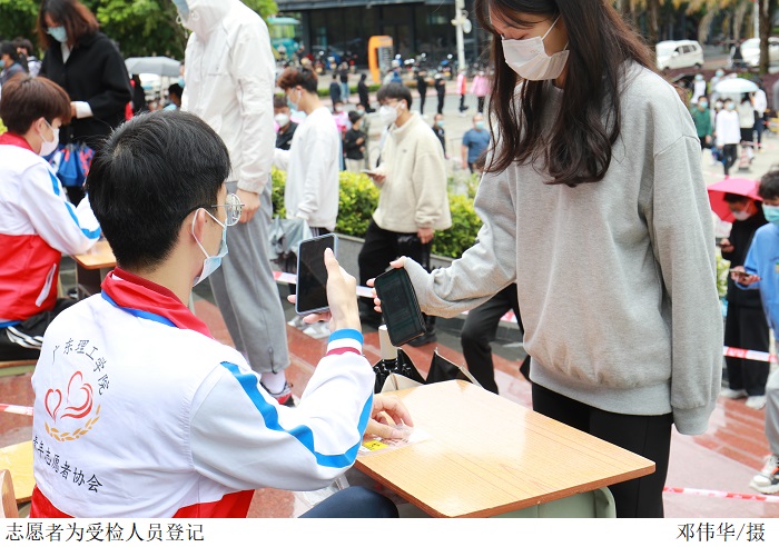 当日上午,检测现场从容有序、高效、温暖。等候区、入口处、验码区、采样区、出口处等标识明确。全体师生员工佩戴口罩,自觉保持一米间隔距离,分时段、分批次,秩序井然地通过防疫通道陆续进入待采区。志愿者们坚守岗位,主动协助进行信息登记、扫码录入、秩序维护等工作。80名医护人员与beat365官网师生志愿者、安保人员及后勤保障近200人组成服务团队,在广大师生员工的积极配合下,历时4个小时,高效完成了总计20391人的核酸检测工作。整个检测流程有条不紊,组织科学、保障有力、防护到位。