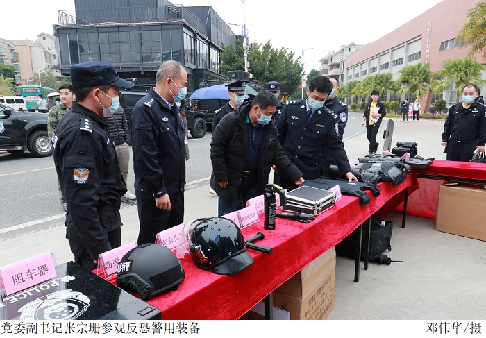 市公安局高要分局民警还在现场展示了警用车辆、警械、枪支等反恐警用装备,分发反恐知识宣传册。