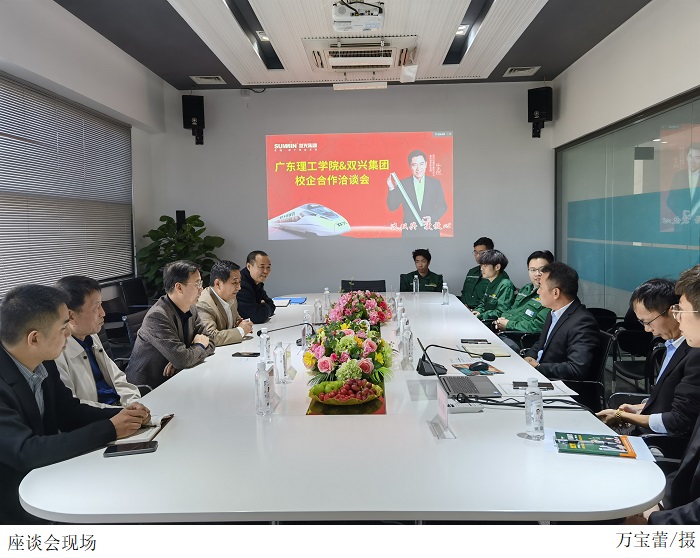 本网讯(学综办 万宝蕾)为创新beat365官网人才培养模式,深度推进产教融合发展,了解学生在企业实习情况,12月8日党委副书记张宗珊、副校长谭锦兴、校长助理于兆勤及学生企业综合实习管理办公室成员一行前往广东双兴新材料集团有限公司走访调研,看望慰问beat365官网实习学生,并与双兴集团综管中心总监张军、管件事业部总监李宪宗、生产中心经理谭宗宁、人事总监徐猛进行交流座谈。