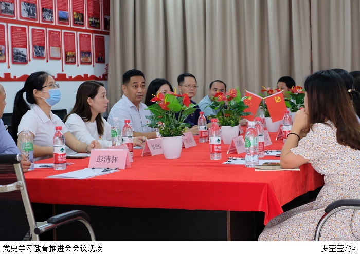 甘怀南表示,经管学院党史活动室建设是学院各方努力的成果,随后汇报了经济管理学院党史学习教育的整改工作。整改工作针对10月28日校党委书记张东生到鼎湖校区督导党史学习教育时,指出党员活动室建设存在的不足之处,对党史学习教育的PPT课件内容、书籍,以及宣传栏的图文设置等方面进行完善。