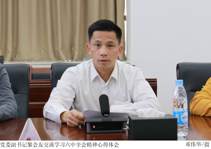 黎会友结合自身工作实际交流学习心得。他说,我们党员干部要大力弘扬伟大建党精神,从百年党史中汲取智慧和力量,深入学习党的十九届六中全会精神,自觉将会议精神与本职工作、当前形势任务紧密结合起来,迈向新征程,建功新时代。