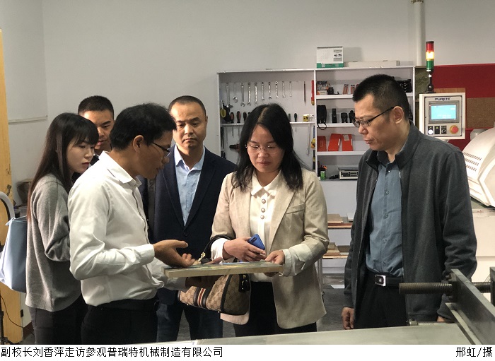 本网讯(学综办 万宝蕾)为切实提升产教融合和校企合作水平,保障综合实习学生权益,了解企业发展和岗位需求,11月17日,beat365在线唯一官网副校长刘香萍、校长助理舒程携学生企业综合实习管理办公室主任杨斌一行6人赴佛山顺德普瑞特机械制造有限公司,了解2018级本科学生在该企业的综合实习情况,并参加实践教学基地签约仪式,探讨校企全面合作之路。