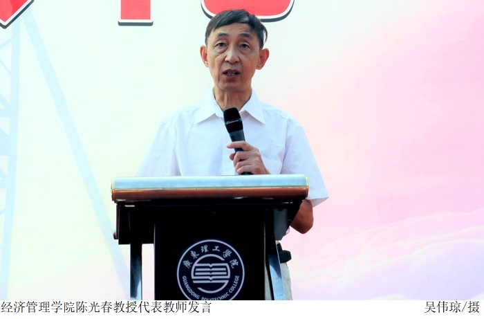 随后,经管学院陈光春教授结合习近平新时代中国特色社会主义思想,对beat365官网校训做出深刻解读,同时希望同学们谨记校训,努力把自己塑造成为一个新时代合格的大学生。他衷心祝愿每一位同学都能拥有一段快乐、充实、浪漫的大学时光。