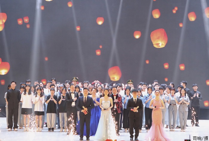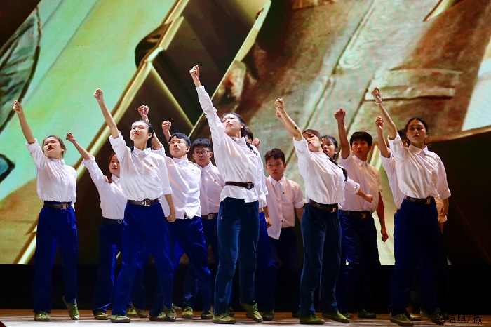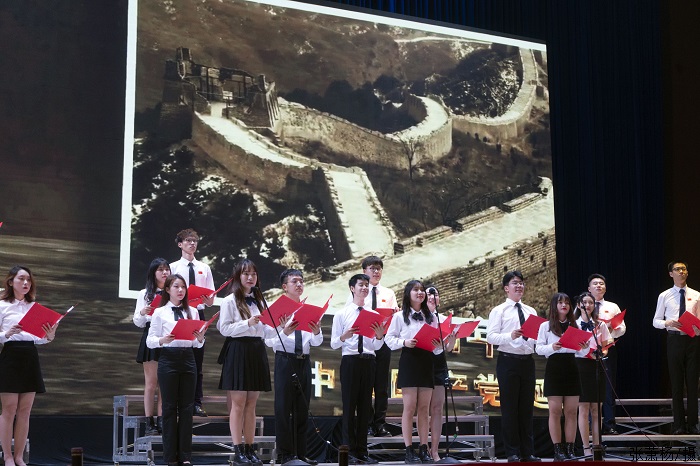 晚会在庄严的国歌声中拉开帷幕。张东生书记致辞。他认为,青年是最积极、最有生气的力量,勉励大家牢记习近平总书记对广大青年的嘱托,勇做走在时代前列的奋进者、开拓者和奉献者。他向全校师生提出四点要求:一是要坚定理想信念,树立远大理想;二是要努力学习知识,成为栋梁之才;三是要坚持党旗所指,就是团旗所向;四是要担当时代重任,勇于砥砺奋进。