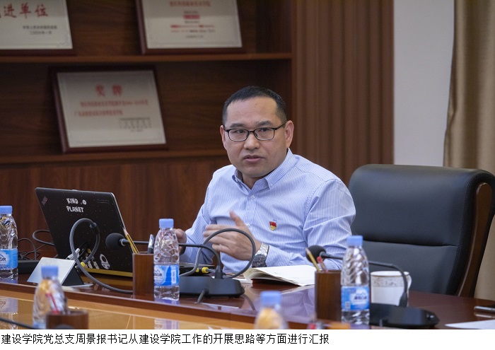 周景报书记从建设学院工作的开展思路、落实近况、未来规划及存在的问题与不足等方面展开阐述。他指出,现阶段,学院以党史学习为主线,全力开展党史学习教育,践行党员服务本色,他提倡学生们办实事创实效,引导学生们规划自身学业,明确自身目标,将工作和学习紧密结合,同时在辅导员队伍方面的建设仍需进一步加强,提升学工团队工作能力和职业素养。