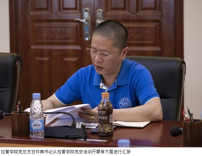 甘怀南书记介绍了经济管理学院的概况并从党史活动开展、校园文化活动开展等方面提出优化意见。一方面,通过线上与线下活动,以实际行动号召全校师生学党史、做实事,提升党员集体意识,将为群众办实事落实到底,另一方面,开展“环保创文”、“防诈骗”、“普法、修德”等系列活动,为学生树立正确的三观,提高学生的法律意识。
