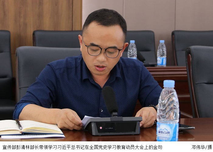 会上,党委黎会友副书记、宣传部彭清林部长还分别带领学习了习近平总书记在两会期间关于教育的重要讲话精神和习近平总书记在全国党史学习教育动员大会上的金句。